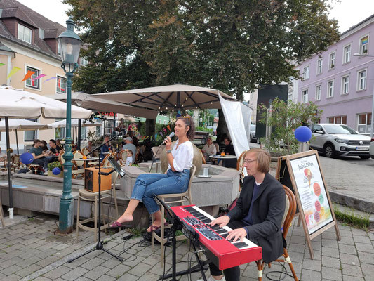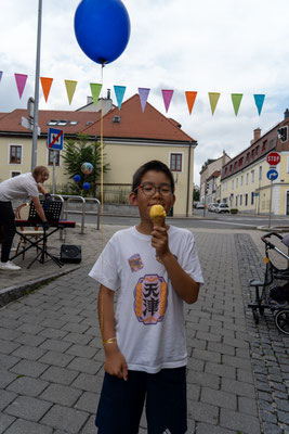 Der Nachmittag stand ganz im Zeichen der kleinen Eisfans. Also viel hat nicht auf die 2.000 Eiskugeln gefehlt, die wir an diesem Tag gratis verteilt haben. Um 16 Uhr begann das Kulturprogramm mit einem Kasperltheater. Um 18 Uhr ergänzten dann Flo Nentwich und Eva Moreno den Eisgenuss mit Musikgenuss auf höchstem Niveau.