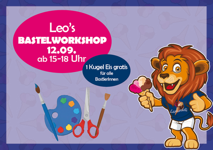 Damit die Eltern in Ruhe unsere Weine genießen können, haben wir uns auch ein Programm für die Kleinen überlegt. Unser Maskottchen Leo ladet zum gemeinsamen herbstlichen Basteln ein. Alle jungen Künstlerinnen und Künstler werden mit einer gratis Eiskugel belohnt.